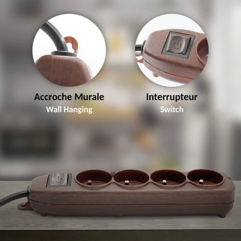Multiprise 4 prises avec Interrupteur – Effet Bois – Câble