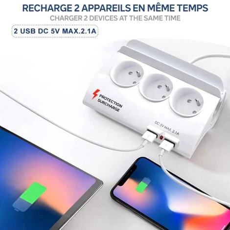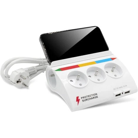 Multiprise Couleur 5 prises et 2 USB + 5 Stickers – Support