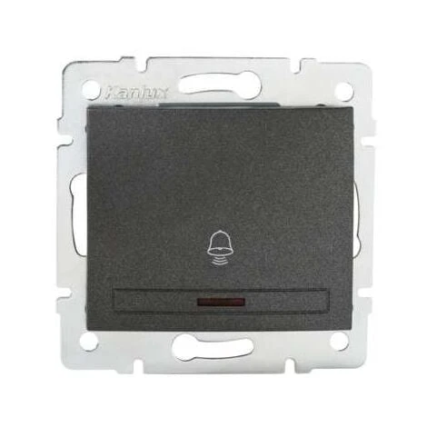 Bouton poussoir encastrable avec logo sonnette. Plastique finition graphite.