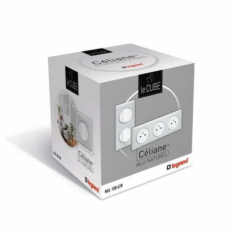 Cube Céliane alu naturel LEGRAND 100670Cube Céliane composé de 30 prises Surface et 10 interrupteurs ou va-et-vient avec enjoliveur blanc et support monté et 10 plaques 1 poste, 2 plaques 2 postes et 1 plaque 3 postes de finition Alu Naturel