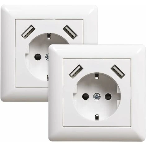 Haut niveau de sécurité: le bo?tier externe de la prise encastrée blanche est en plastique ignifuge | La prise USB encastrée est sécurisée par une protection électronique contre les courts-circuits et les surcharges (USB), la prise encastrée avec sécurité enfants intégrée