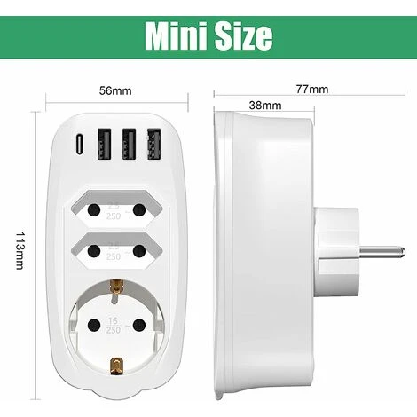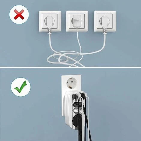 La fiche double pour prise de courant avec interrupteur convient à la mise à la terre des prises de courant avec contact de mise à la terre selon les normes allemandes. Branchez-le simplement sur une prise allemande et obtenez une extension jusqu’à 3 prises. répondre à vos besoins de charge en toute sécurité et en continu. Puissance max jusqu’à 3680 watts (max. 250 V. 16 A). Le cadre blanc s’intègre parfaitement dans le style de vie actuel. à la fois tendance et pratique