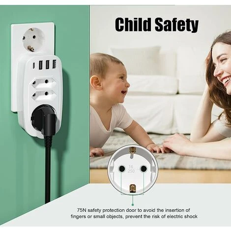 Haute sécuritéSécurité enfant intégrée pour éviter les chocs électriques. L’utilisation de cuivre de haute qualité comme conducteur réduit la consommation lors de l’utilisation d’équipements électriques. La coque est en PP ignifuge. absolument sûr et sécurisé