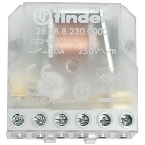 Relais/interrupteur Finder Type 26.08 pulsé avec 4 séquences, avec les caractéristiques suivantes :