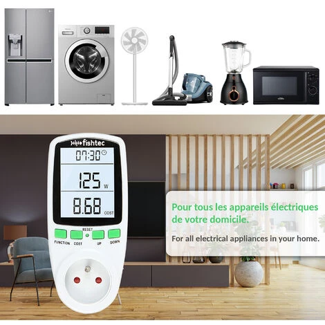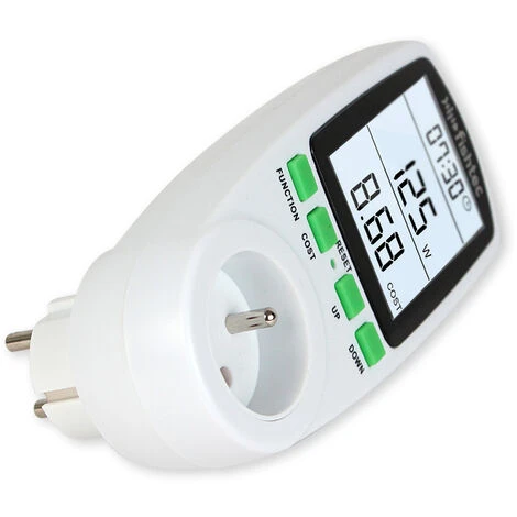 FONCTIONS – Le wattmètre affiche différentes informations en temps réel ou via un enregistrement et surveille la puissance (w), l’énergie (kwh), la tension (V), l’ampérage (A), le facteur de puissance, le coût et la puissance minimale et maximale.