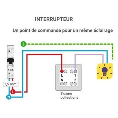 Va-et-vient simple encastré blanc 10AX 250V composable.