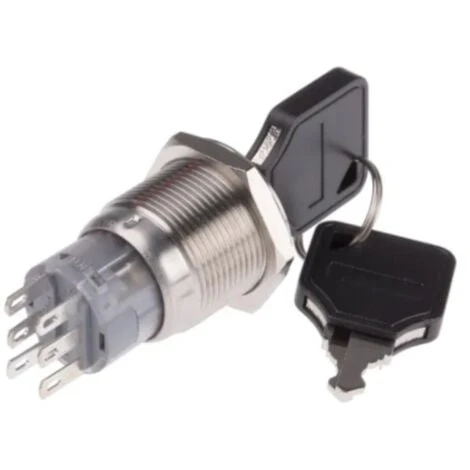 Description de l’interrupteur à clé RS PRO – 3 positions – Bipolaire à deux directions – Référence 877-2009 :