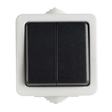 Interrupteur étanche va-et-vient double. Plastique finition noir.