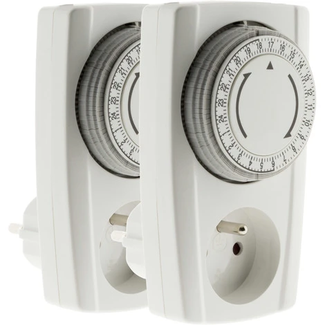 Lot de 2 prises programmables mécaniques 24h – Noir & Blanc
