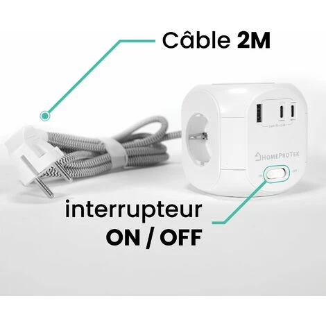 CÂBLE D’ALIMENTATION : le cordon d’alimentation de 2 mètres de la multiprise d’extension vous permet d’accéder à des prises éloignées et à des endroits difficiles d’accès. Il est fabriqué dans un matériau tressé épais qui est durable et ne se déforme pas facilement.