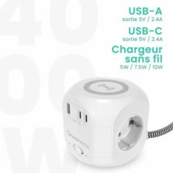 Multiprise 5 Prises + 2 Ports USB Parafoudre/parasurtenseur, Schneider Electric Ref. PM5U-FR