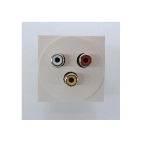 Prise audio + video 3 sorties RCA 2M blanc format 45X45mm bornes vis Systo HAGER WS261