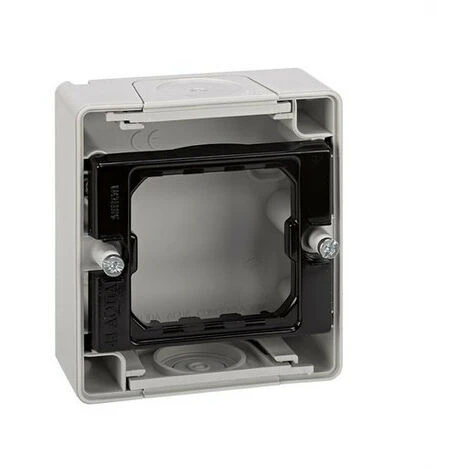 Base de surface pour 1 élément Simon 44 Aqua. Cette base de surface de la gamme Simon 44 Aqua est préparée pour fournir une prise de courant pour un élément. Ce produit a une surface de 84×76 millimètres et une profondeur de 33 millimètres. Ses caractéristiques rendent cette base idéale pour une installation dans n importe quel endroit. Les bases de la série Simon 44 Aqua sont fabriquées en matière plastique de haute qualité très résistante à la chaleur, dans le but d augmenter la sécurité des produits et de prévenir d éventuels accidents. En ce sens, le matériau innovant utilisé pour sa fabrication est le thermoplastique et peut supporter des températures plus élevées que d habitude pour la tranquillité d esprit du client et de l utilisateur. La polyvalence de la base de surface Simon 44 Aqua lui permet d être installée très simplement et rapidement, et elle peut également être réalisée à la fois horizontalement et verticalement, élargissant ainsi ses possibilités d utilisation dans les pièces de la maison, du bureau ou de l appartement.