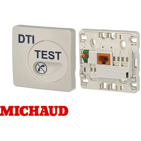 Prise DTI, RJ45 agréée France Télécom. Montable sur rail DIN ou en saillie avec parafoudre intégré.