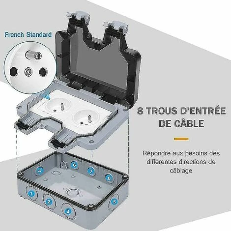 Conception étanche IP66 : utilisation d’un matériau PC de haute qualité, anti-UV, anti-corrosion. IP66 protégé contre les intempéries et la poussière, offre un haut niveau de protection contre la pénétration d’eau et de poussière. Sûr et pratique à utiliser : cette prise à deux trous pour attacher un cadenas afin d’éviter une ouverture accidentelle. Il peut être ouvert à tout moment lorsqu’il a besoin d’électricité. Conception conviviale de la boucle de commutation : la fiche et le câble peuvent être connectés directement à partir de l’interrupteur sans affecter l’étanchéité du couvercle. Installation facile : vous pouvez ouvrir le boîtier, fixer le câble à la borne enfichable et le rebrancher, section de câble jusqu’à 2,5 mm possible via l’entrée de câble – un grand espace de câblage offre suffisamment d’espace pour tous les câbles. Occasions applicables : parfait pour l’ 39;extérieur, le parc, le jardin, le garage, les toilettes, l’intérieur eur et l’extérieur et d’autres endroits humides.