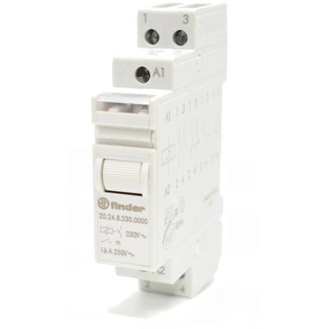 Relais inverseur Finder Type 20.24 relais modulaire à impulsion, avec les caractéristiques suivantes :