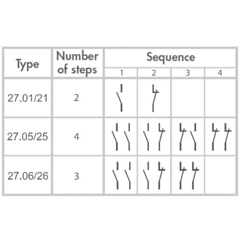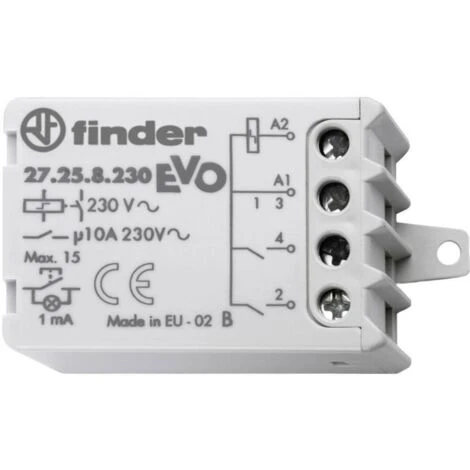 Télérupteur électromécanique avec alimentation commune des circuits bobine et contacts. Type 27.2x EVO : Pour la commande directe de 15 boutons poussoirs lumineux sans module de commande/condensateur. Commande fiable à 100%. Le relais ne surchauffe pas même lorsque le bouton fonctionne en continu ou lorsqu’il est bloqué.