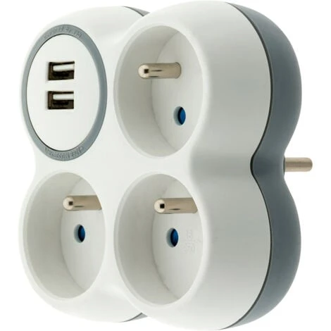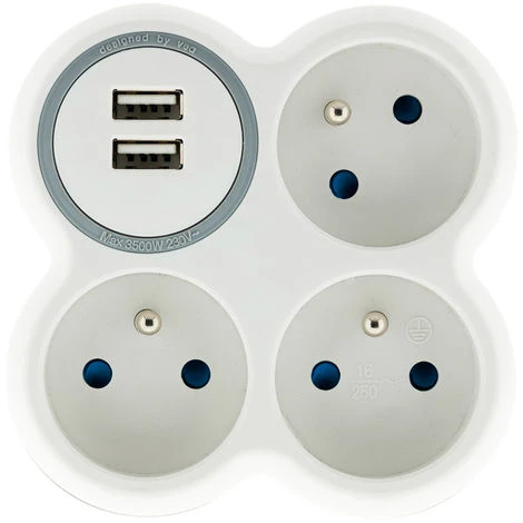 Cette triplite 16A est équipée de 3 prises 2P+T en façade et de deux ports USB 2.1A intégrés. Elle supporte une puissance maximale de 3680W sous 230V. Son design sobre et contemporain lui permet de s’intégrer harmonieusement à votre intérieur. Couleur: blanc et gris.